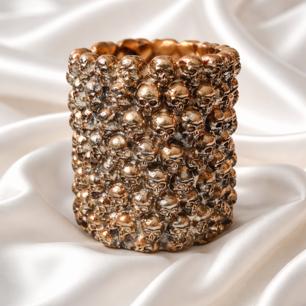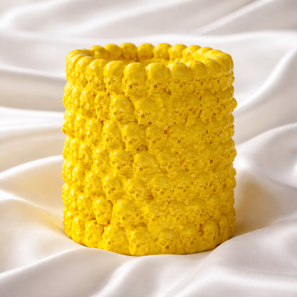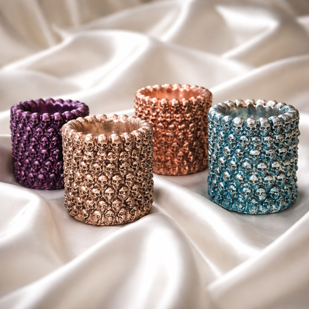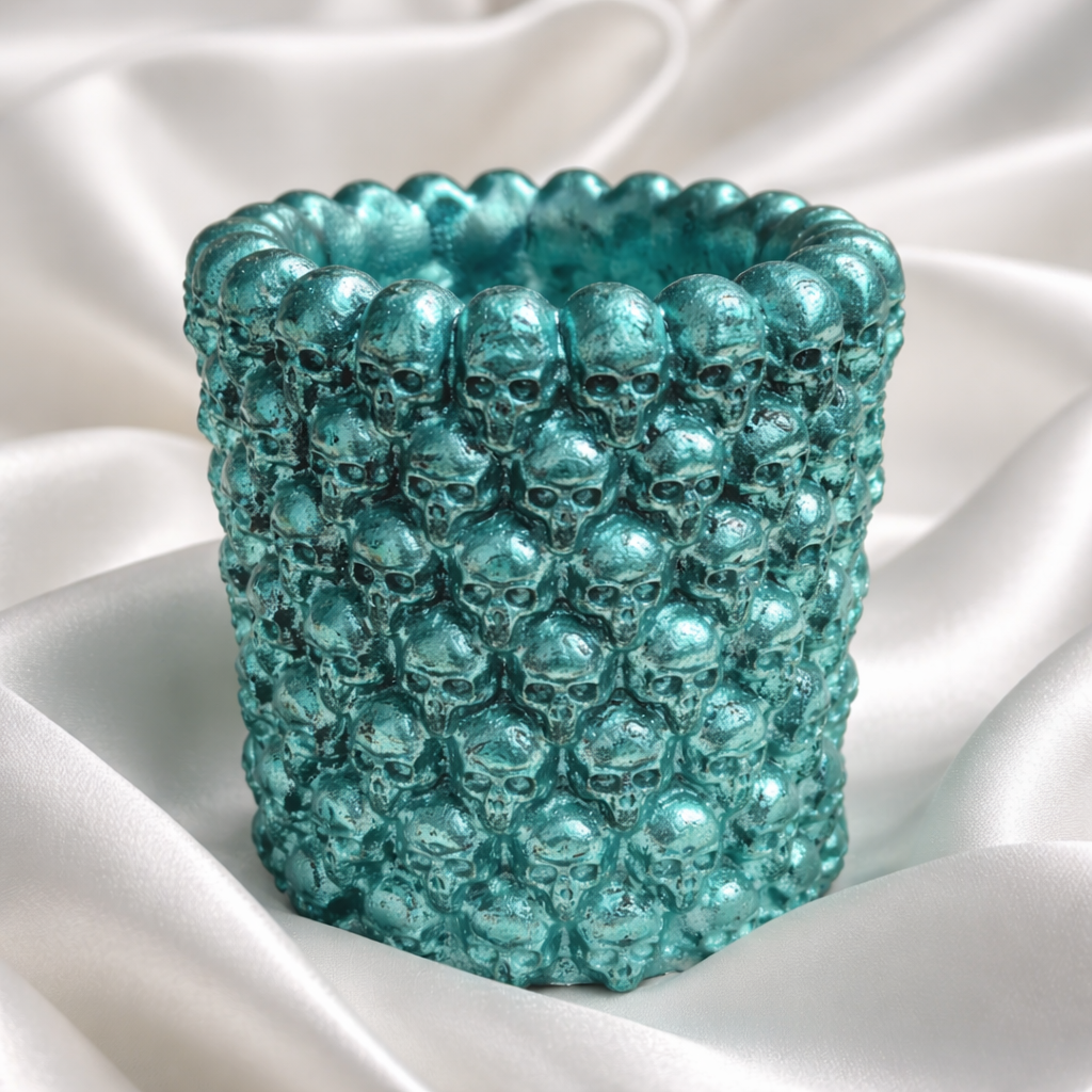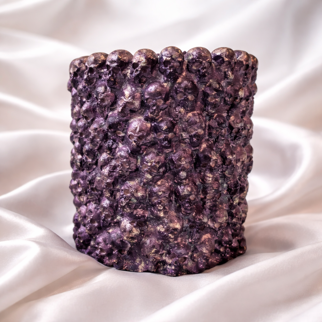 These beautiful pots with tiny skulls covering the outside are crafted with care in my Cheshire studio with Plaster of Paris, this elegant 5.5-inch pencil pot is versatile enough to hold makeup brushes, pens, and pencils.